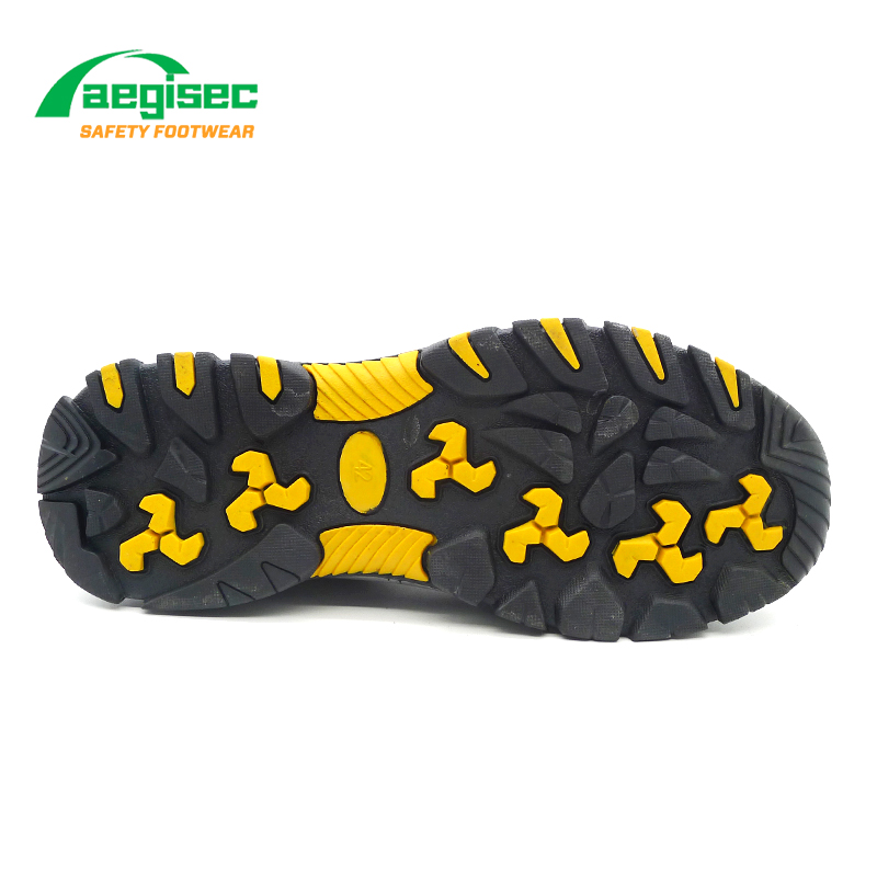 AEGISEC breathable fly knit sport safety shoes are with the anti impact steel toe cap and steel midsole. The rubber outsole grants exceptional slip resistance, while resisting oil, fuel, chemicals, and extreme temperatures.